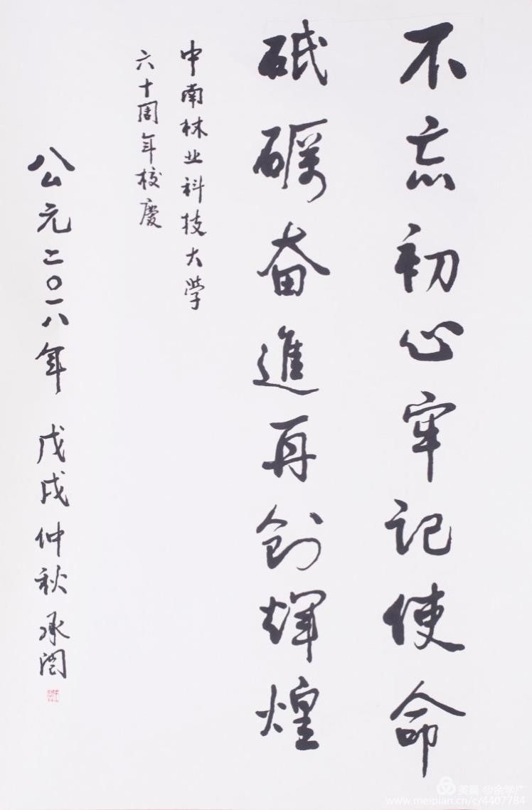 在纪念办学60周年庆典即将到来之际,我们对参与书画作品创作的历届校友和教职员工的辛勤付出,表示衷心感谢!同时,我们也相信,在党和政府的大力支持下,在社会各界的热心帮助下,在所有中南林人的共同努力下。学校将聚焦学术、绿色、创新之主题,共谋转型发展、内涵发展、特色发展之道,为推动绿色发展和生态文明砥砺前行。